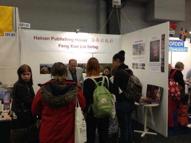 海南出版社在为期4天的书展中,为热衷读书的北欧书迷们带来了包括不同译版的《中国民间寓言故事》、《烙印---中国少数民族摄影》、《海南黎村苗寨》、《中国海南菜》、《福山咖啡》、《海南黎族传统工艺》、《和您一起欣赏海南美丽的植物》等23种图书。