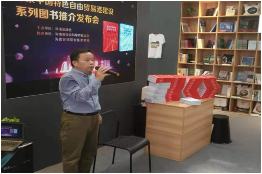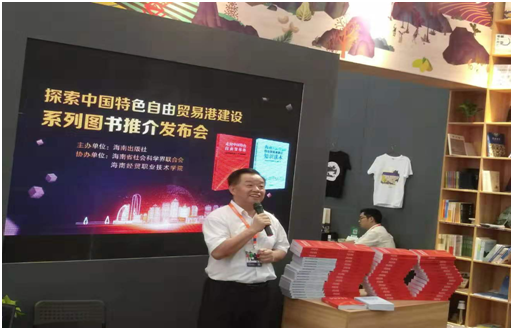 27日下午3点,在书博会海南展馆,举办了“探索中国特色自由贸易港建设”系列图书推介发布会,隆重推出了由钟业昌著作的《走向中国特色自由贸易港——十论学习习近平总书记“4.13”重要讲话精神》和由黄景贵主编的《海南自由贸易港建设知识读本》两本自贸题材的重点图书。新书推介会以沙龙座谈的形式开展,由海南出版社总编辑谭丽琳主持,海南省社会科学界联合会党组书记钟业昌、海南经贸职业技术学院院长黄景贵、海南出版社社长王景霞等出席。推介会上,这两部图书的作者和主编钟业昌、黄景贵两位老师与现场读者朋友交流分享编写初衷与心得,普及自贸区(港)知识,对现场来宾的提问给予热情细致的回复,加深了大家对海南自贸区(港)建设的了解。现场读者与嘉宾积极互动,反响热烈。