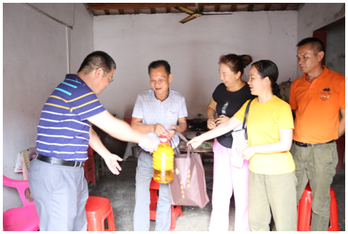 在员工们挥洒汗水的同时,海南出版社监事会主席郑爽、驻村第一书记满丽华等走访慰问了郭石村老弱病残贫困户。长期以来,公司关注着郭石村贫困群众的生活,帮助他们早日脱贫是出版社一直以来的脱贫工作重点和奋斗目标。在此次慰问活动中,公司领导不仅带来了慰问品,还带来了亲切的问候和美好的祝福,我们期待在公司的帮扶和贫困户自身的努力下,郭石村能早日摘掉“贫困帽”,昂首奔小康。