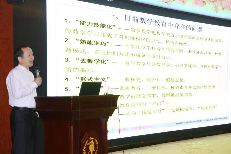 11月13号上午,华东师范大学出版社总编辑李文革老师作《基于深度学习的初中数学教学策略》的报告。报告从目前数学教育中存在的问题、人工智能时代的数学学习、基于深度学习的数学教学策略、基于深度学习的数学教学设计框架、基于深度学习的解题能力培养策略等五个方面展开。最后,李文革老师总结了华东师大版数学教材的特点,并提出在使用华东师大版数学教材过程中应注意的问题。