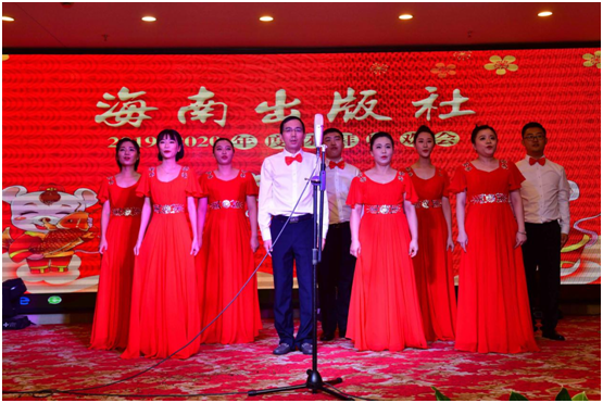 团拜晚宴中,王景霞社长带领高管团队为郭石村的父老乡亲和公司全体员工送上了诚挚的新年祝福,祝愿大家鼠年吉祥、阖家安康;祝福海南出版社全体员工新的一年勇攀高峰,不忘初心,牢记使命,再创辉煌。
