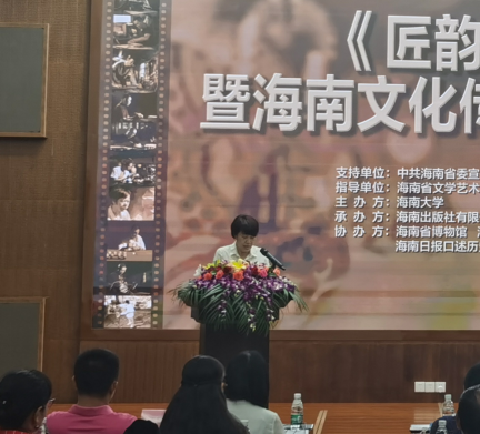 海南省委宣传部一级巡视员孙苏首先致辞,她对《匠韵琼艺》的出版表示祝贺,指出《匠韵琼艺》在宣传展示海南本土独特的传统手工艺方面做出了积极的贡献,对挖掘、保护、传承和弘扬海南优秀传统文化具有重要意义。