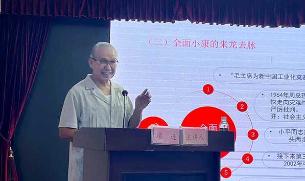 廖逊教授以《以史为鉴开创未来迈向第二个百年》为题,从“全面建成小康社会意义深远”“复兴中华民族四个伟大成就”“以史为鉴开创未来,必须做到九个方面”等三个方面,对习近平总书记“七一”重要讲话“一项‘宣言'”“四大贡献”“九个必须”等主要内容进行了详细的解读。报告主题鲜明,内容丰富,重点突出,兼具理论性与思想性,进一步深化了大家对习近平总书记“七一”重要讲话精神的理解和把握,引导大家进一步坚定了对中国共产党领导的自信、对中国特色社会主义的自信,更好地明理增信、崇德力行,增强高质量推进海南自由贸易港建设的信心和决心。